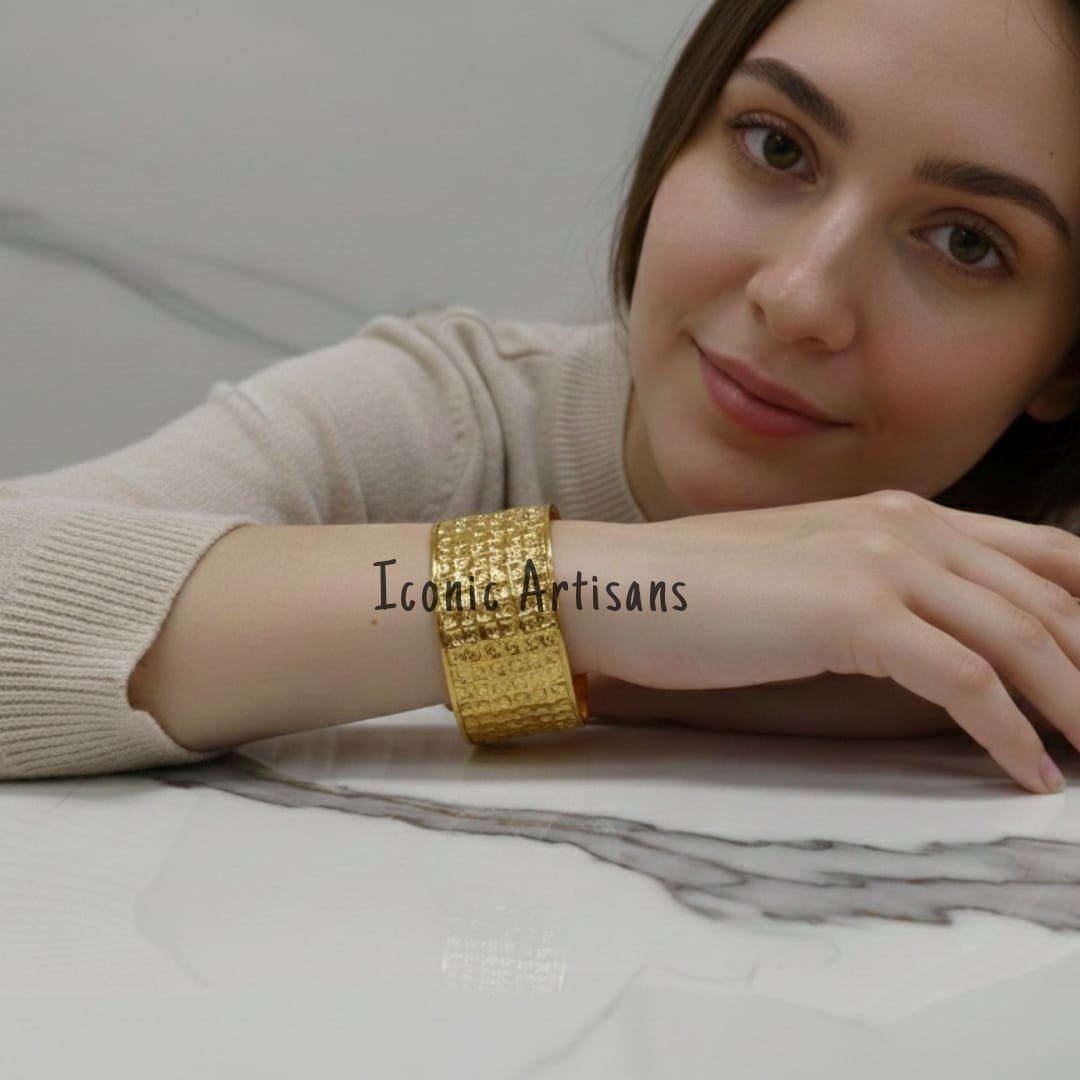 Discover the perfect blend of traditional craftsmanship and modern bold style with our Embossed Textured Brass Cuff. This isn’t just a bracelet; it’s a piece of wearable art designed for the woman who loves to stand out.