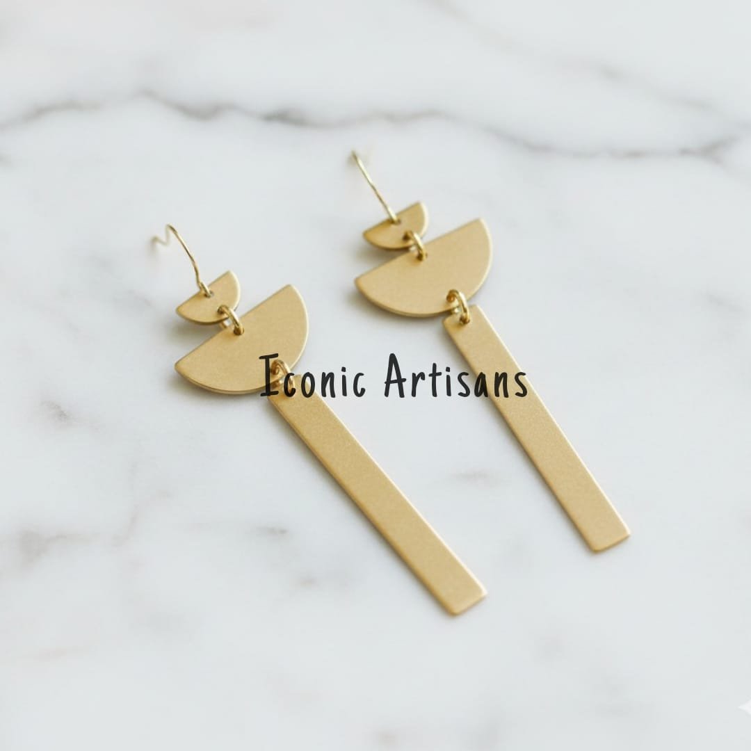Be the first to review “Handmade Brass Linear Geometric Drop Earrings – Modern Triple-Tier Half-Moon and Bar Statement Jewelry for Women”