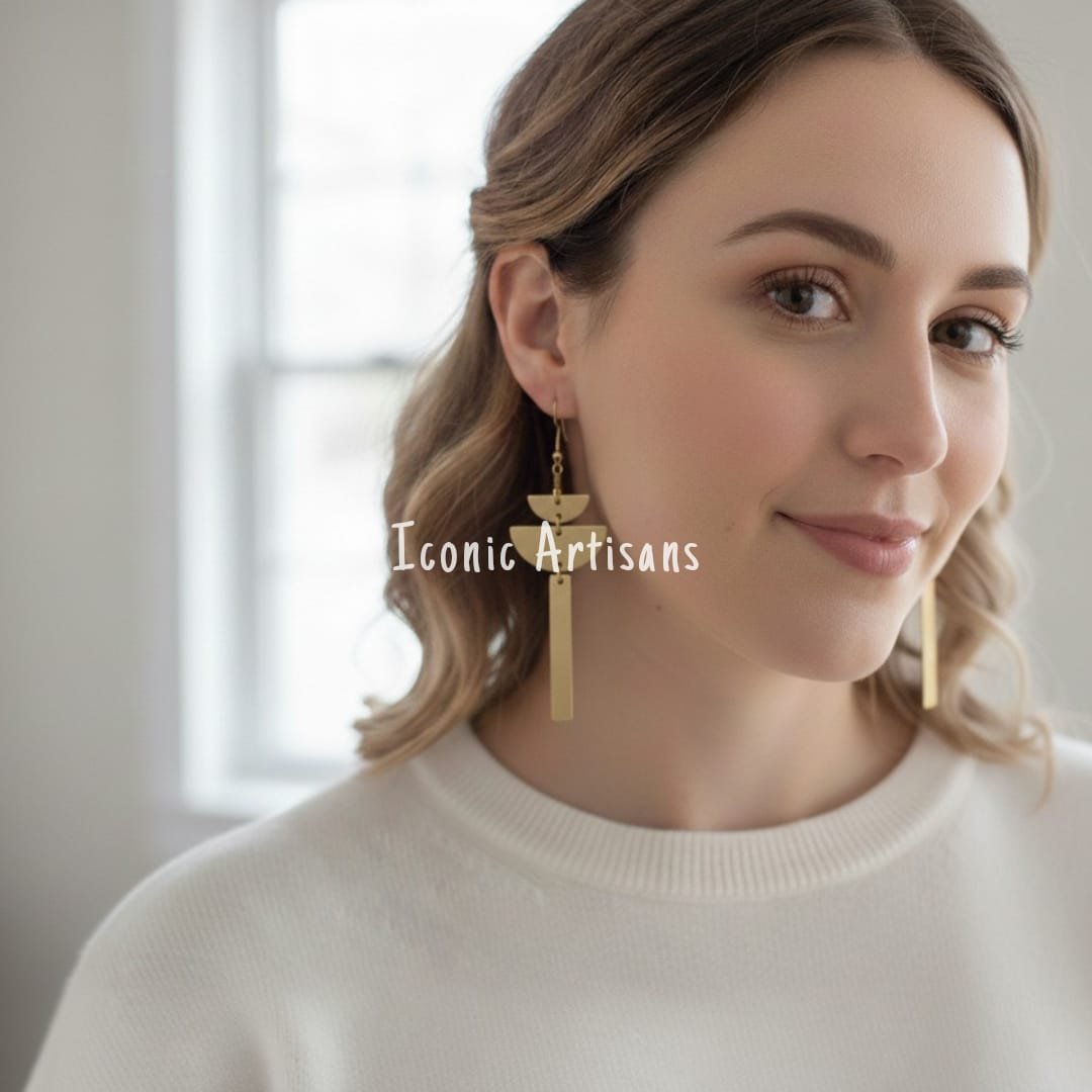 Make a sophisticated statement with our Iconic Artisans Linear Geometric Brass Earrings.