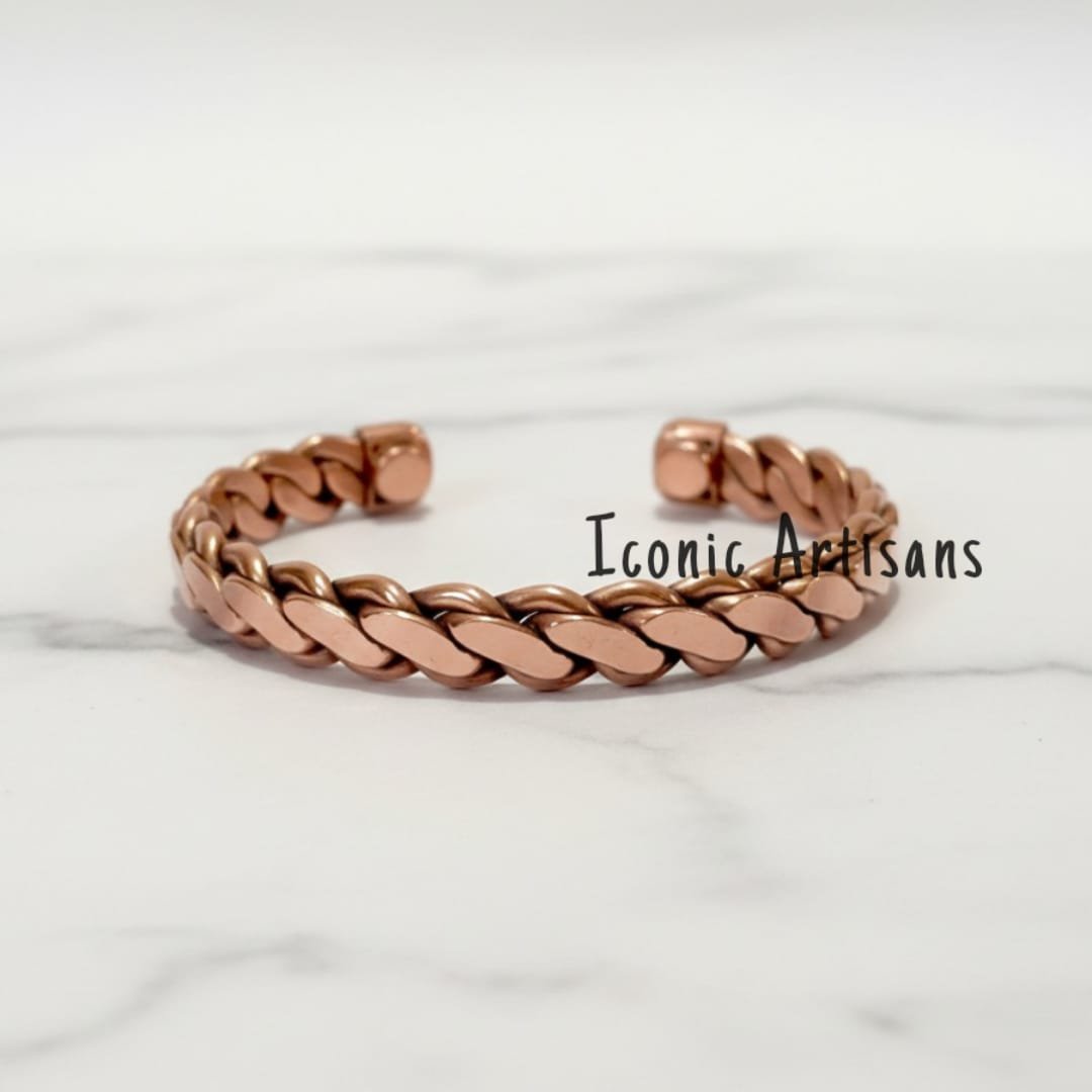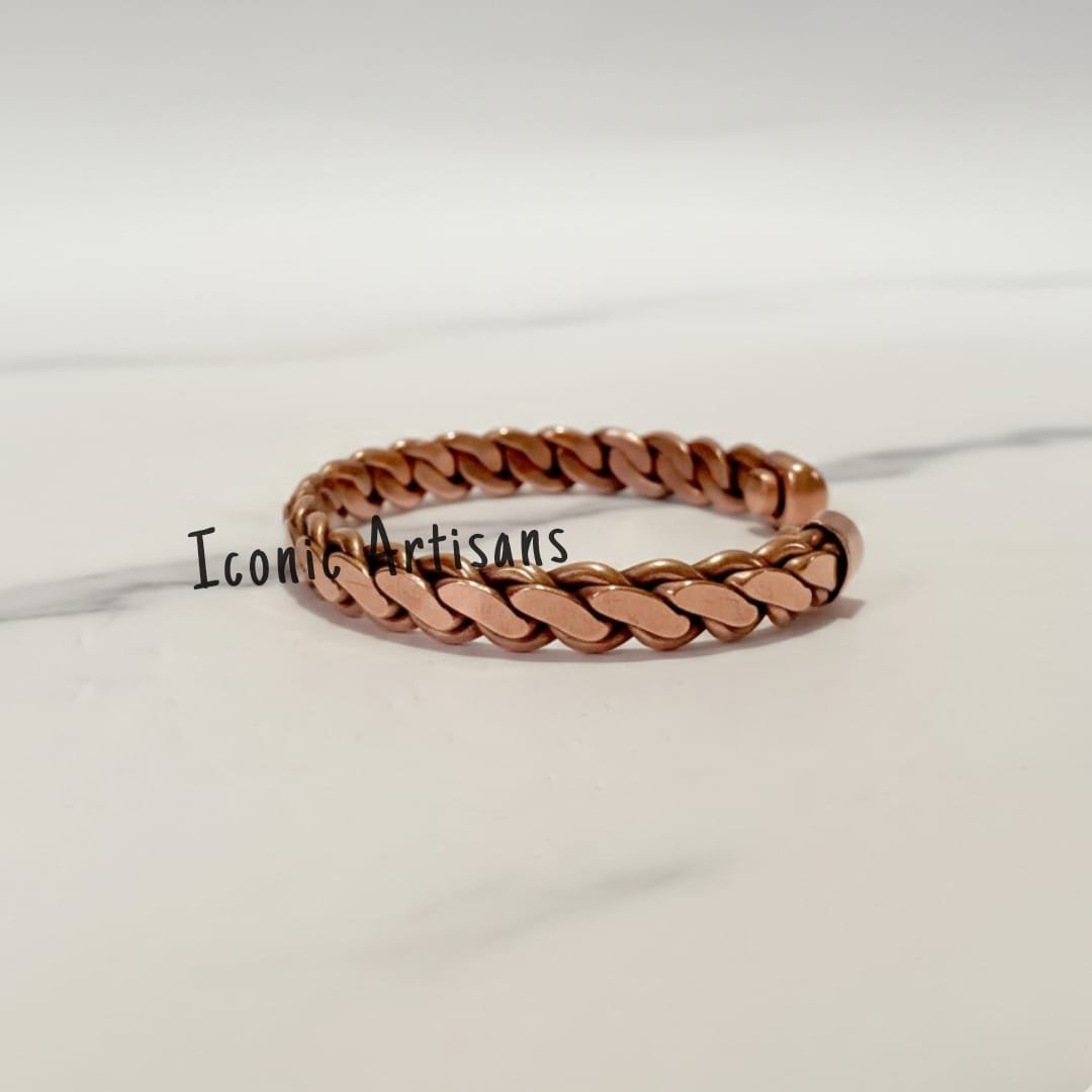 Traditional Braided Artistry Bring a touch of classic craftsmanship to your style with the Iconic Artisans Braided Copper Bracelet. This piece is masterfully handcrafted from 100% pure copper, featuring a unique rounded braided pattern that provides exceptional texture and a refined, jewelry-grade finish. Unlike flat cuffs, this rounded link design offers a more organic, fluid look that complements both casual and formal attire.