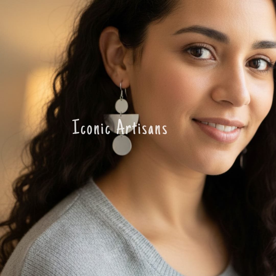 Be the first to review “Handmade Silver Geometric Tiered Drop Earrings – Elegant Three-Piece Disc and Half-Moon Statement Jewelry for Women”