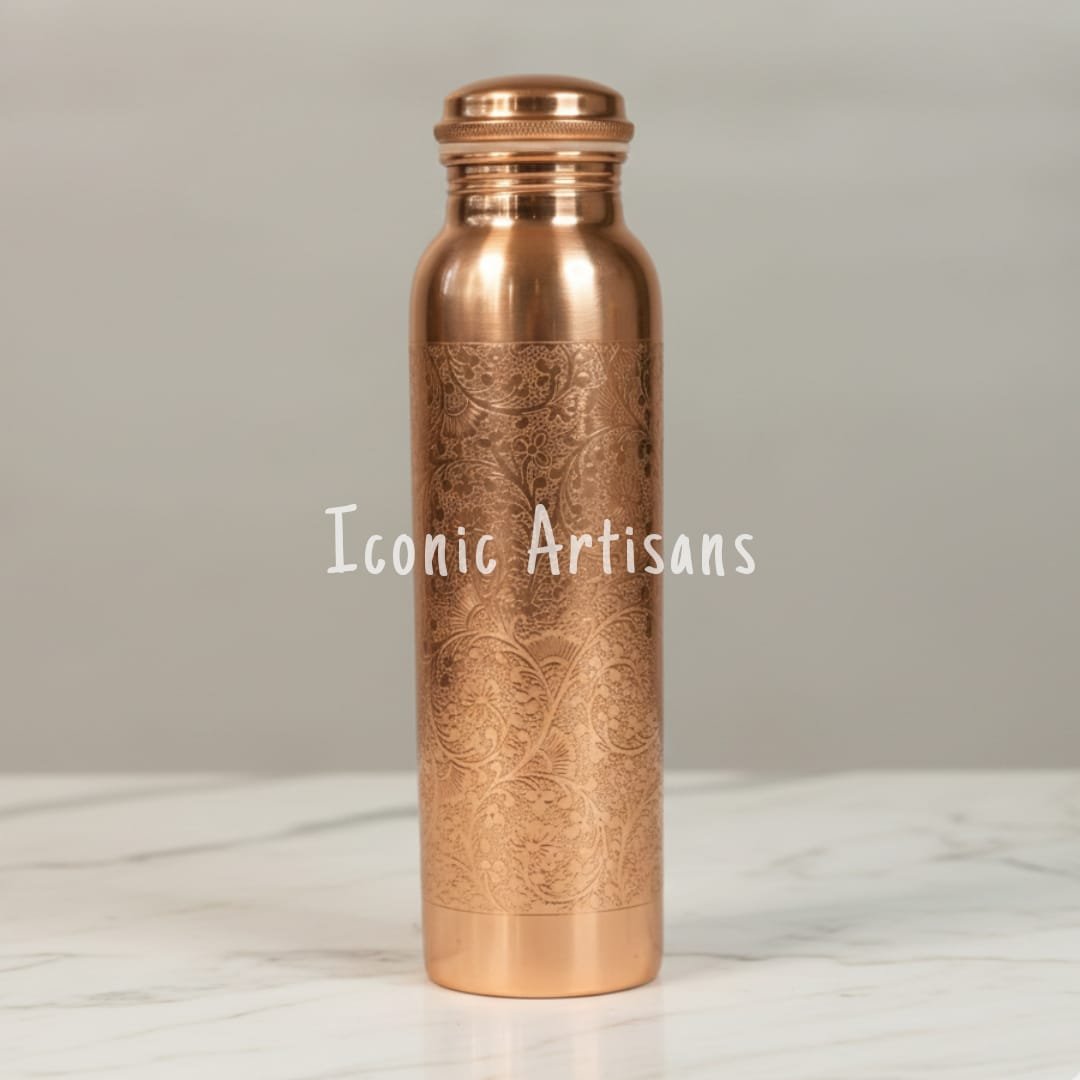 Bring home a piece of traditional craftsmanship with the Iconic Artisans Floral Engraved Copper Water Bottle. This isn’t just a hydration tool; it’s a lifestyle statement. Each bottle is intricately engraved with a timeless floral motif that provides a better grip and a premium look.