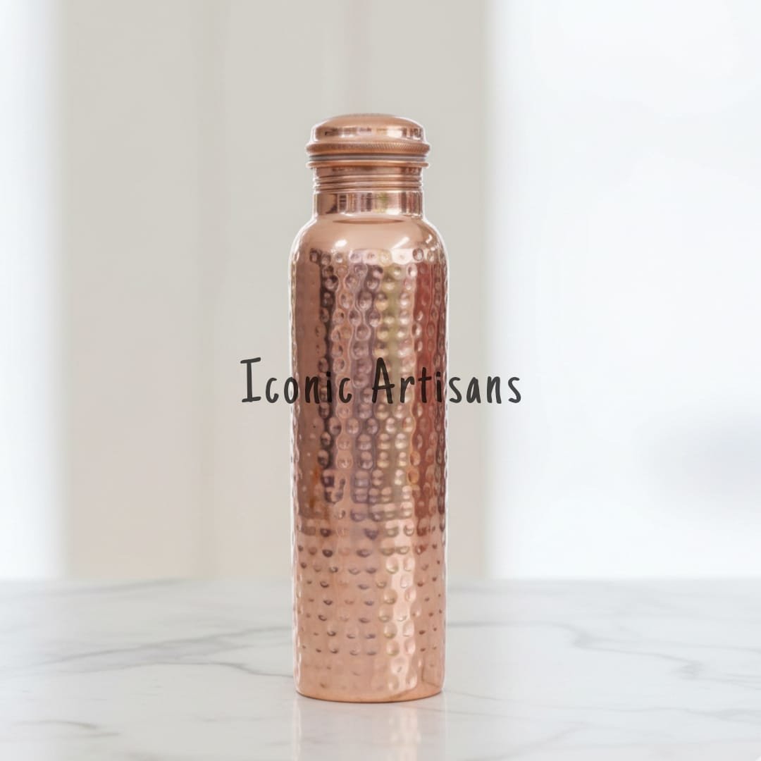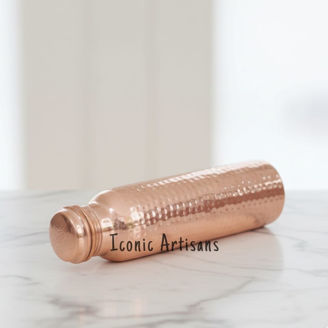 Elevate your daily wellness routine with the Iconic Artisans Pure Copper Water Bottle. For centuries, Ayurveda has recommended storing water in copper vessels (Tamra Jal) to help balance the body’s three doshas—Vata, Pitta, and Kapha.